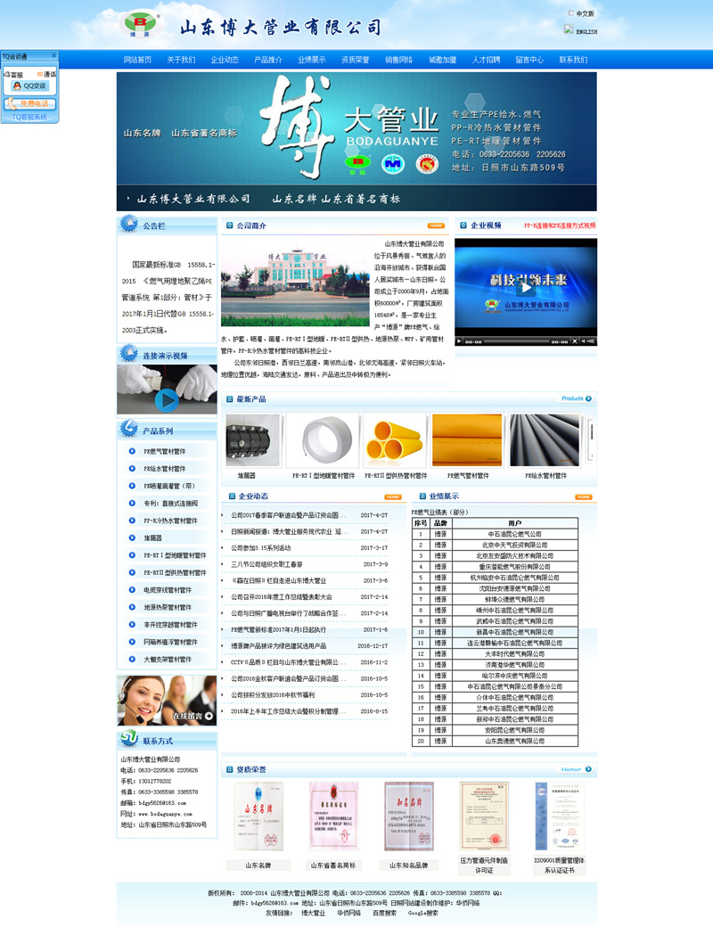 公司是中國城市燃?xì)鈪f(xié)會(huì)、中國塑料加工工業(yè)協(xié)會(huì)塑料管道專業(yè)委員會(huì)會(huì)員單位。公司被評(píng)為全國誠信守法民營企業(yè)、全國重質(zhì)量守信譽(yù)先進(jìn)單位、山東省高新技術(shù)企業(yè)、山東省重合同守信用企業(yè)、山東省消費(fèi)者信得過單位、日照市優(yōu)秀民營科技企業(yè)、日照市AAA信用企業(yè)、日照市行業(yè)領(lǐng)軍品牌、日照市質(zhì)量管理先進(jìn)企業(yè)。公司生產(chǎn)的“博源”牌系列產(chǎn)品榮獲“山東名牌”、“山東著名商標(biāo)”“知名品牌”稱號(hào)。